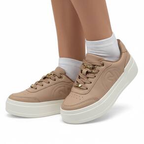 Sua palmilha com tecnologia de conforto proporciona uma pisada leve e macia, ideal para longos períodos de uso. A plataforma garante altura na medida certa, valorizando a silhueta sem abrir mão da estabilidade. O cabedal em material sintético de alta qualidade traz acabamento impecável e fácil de limpar, enquanto o solado emborrachado oferece excelente aderência ao solo.