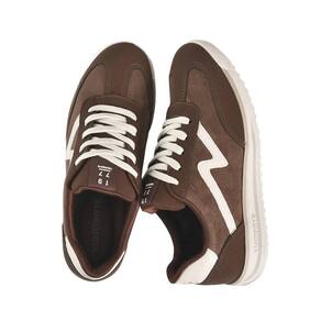 O cabedal apresenta acabamento liso com detalhes em relevo e aplicação em formato de faixa lateral, que reforça a identidade do calçado e adiciona um toque despojado à composição. A costura aparente contribui para a estrutura e valoriza o design. A lingueta e a parte interna acolchoadas favorecem o bem-estar durante o uso, enquanto o cadarço firme proporciona um ajuste seguro aos pés.