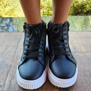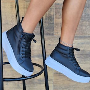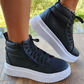 Bota Feminina com Solado tratorado Plataforma Descubra o Charme do Conforto para seus treinos ou passeio com nosso coturno feminino Características Principais: Cabedal: Sintético Forro: Tecido Antibacteriano Palmilha: Confort Eva 4mm Sola: Borracha Antiderrapante Altura Da Sola: 5 Centrimetros calcanhar, 3 centimetros no bico. Metais: Antioxidante Ajuste: Cadarço Fios De Algodão E Zíper Reforçado Peso: 0.600g Atenção na hora de escolher seu tamanho, o Tênis possui FORMA NORMAL, pedir o número que já está acostumado a usar, temos aqui a abaixo uma tabela aproximada de cm da palmilha para usarem como referência. TAMANHO DE PALMILHA 33 - 22.9 cm 34 - 23.2 cm 35 - 24.0 cm 36 - 24.5 cm 37 - 25.0 cm 38 - 26.0 cm 39 - 27.0 cm 40 - 27.5 cm Não perca a chance de adicionar um toque de elegância e conforto ao seu guarda-roupa. Clique em "Comprar Agora" e experimente a combinação perfeita de estilo e comodidade com nossos Coturnos Femininos. Seu próximo par de sapatos favorito está a apenas um clique de distância!