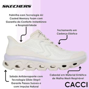 O cabedal em material sintético de malha mesh respirável garante ajuste confortável e ventilação contínua, permitindo que os pés se mantenham secos e arejados. O fechamento em cadarço elástico facilita o calce, oferecendo praticidade e encaixe seguro. O solado antiderrapante com tecnologia Glide-Step® completa o conjunto, promovendo passos suaves e impulso natural, com tração eficaz em diferentes superfícies. Um modelo que combina tecnologia, leveza e design para acompanhar você com elegância e segurança em todos os momentos.