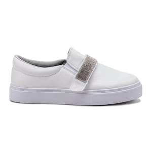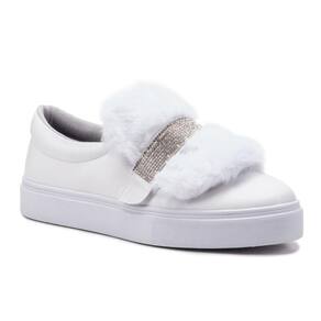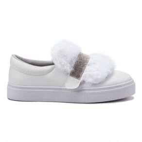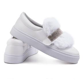 Tênis Feminino Slip On 3 em 1 Casual Strass E Pelúcia - Branco - 34