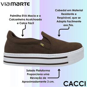 O Tênis Slip On Via Marte Feminino 2210209 é um modelinho cheio de estilo, conforto e casualidade. É uma ótima opção para se usar tanto no dia a dia quanto em passeios aos finais de semana. Seu design apresenta ajuste elástico nas laterais, palmilha removível em espuma e solado plataforma em PVC medindo 3,5 cm. Viva o estilo com Via marte!