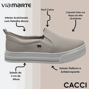 O Tênis Casual Via Marte apresenta um design estilo Slip-On, oferecendo facilidade ao calçar e um visual moderno. Com seu solado flatform antiderrapante ele traz mais firmeza e segurança ao caminhar.