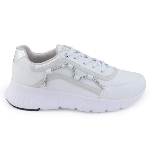 Tênis Via Marte 24-77104 é um modelo Casual para compor diversos looks. Seu cabedal é fabricado em material sintético com acabamento em costuras e microfuros além de lindos detalhes em strass, este tênis é todo forrado internamente proporcionando conforto e com fechamento em cadarço para facilitar o calçe. Sua palmilha interna é removível, macia e revestida em material têxtil apresentando a logo da marca. O solado flatform branco, possui 3cm de altura traseiro e 1,5cm de altura frontal, é confortável e traz segurança ao caminhar. Seu solado possui frisos para maior segurança.