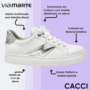Cada detalhe foi pensado para proporcionar um visual moderno e diferenciado, permitindo que você expresse sua personalidade através do seu estilo. Com o tênis Via Marte, você estará sempre na moda, sem abrir mão do conforto e da qualidade.