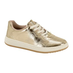Tênis Feminino Vizzano Fashion Metalizado Cadarços 1466.100: conforto aliado ao estilo moderno para o dia a dia. Com design metalizado em tom dourado, este tênis é perfeito para mulheres que desejam destacar seu look com um toque fashion e sofisticado, sem abrir mão do conforto. Seu cabedal em material sintético proporciona resistência e fácil limpeza, enquanto a palmilha macia garante conforto prolongado. A sola emborrachada antiderrapante oferece segurança em diferentes superfícies, ideal para uso urbano e casual. O fechamento com cadarços ajusta perfeitamente aos pés, favorecendo a estabilidade. Este modelo Vizzano surpreende por sua versatilidade, combinando com jeans, vestidos e roupas esportivas, sendo indispensável para quem busca elegância e praticidade.