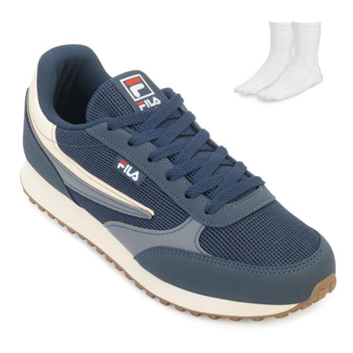 Nome: Tênis Fila Renno Classic e Meia FL24. Gênero: Masculino. Indicado Para: Dia a Dia-Lifestyle Ocasião: Prática de Esporte/Casual. Material Externo: Alternativo/Tecido Mesh. Material Interno: Têxtil acolchoado. Detalhe: Etiqueta com logo da marca na lateral. Recortes e costuras com combinação de cores. Fechamento: Cadarço. Palmilha: EVA forrada. Entressola: EVA. Solado: Borracha antiderrapante. Tipo de Pisada: Neutra. Peso do Produto: 1.053 kg (o peso varia de acordo com a numeração). Garantia do Fabricante: Contra defeito de fabricação. Origem: Nacional. Código Produto: 01024714. Marca: Fila. Acompanha um par de meias tamanho 37 ao 43. Composição: 83 % Algodão. 12 % Poliéster. 05 % Elastodieno.