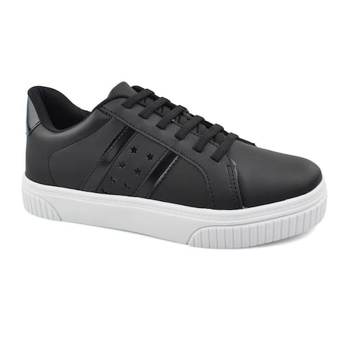 Tênis Godiva Calce Fácil Listras Laterais Estrelas Feminino Preto 341685
