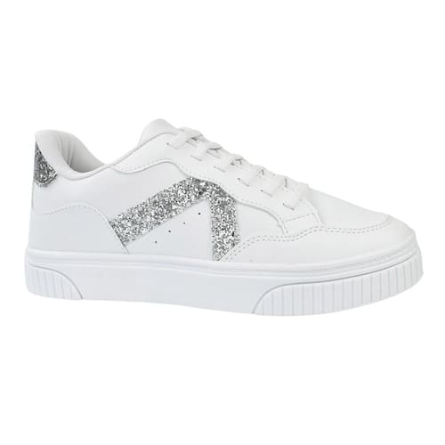 O Tênis Godiva Casual Feminino Branco Bronze possui design moderno e despojado, perfeito para compor os mais divertidos looks. Fabricado em material sintético de alta qualidade, seu cabedal é todo na cor branca, com detalhe na cor prata com acabamento em glitter, na lateral e na traseira, possui cadarços como forma de ajuste, também conta com forro interno revestido por material têxtil, sua palmilha é macia, composta por espuma e seu solado é emborrachada e possui altura elevada.