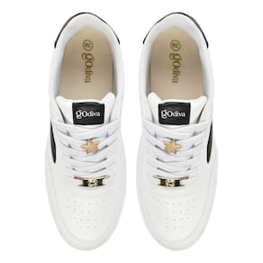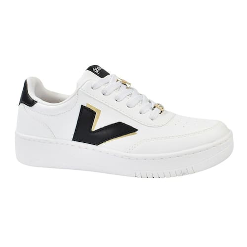 Tênis Godiva Casual V Lateral Cadarço feminino Branco Preto 338394
