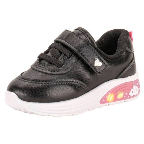 O Tênis Infantil Feminino Baby Led Molekinha é confeccionado em Napa Turim com acabamento em costura, fechamento por tira aderente e cadarço, forro interno em têxtil, palmilha em PU e solado em borracha com luz de Led que acende a cada passo.