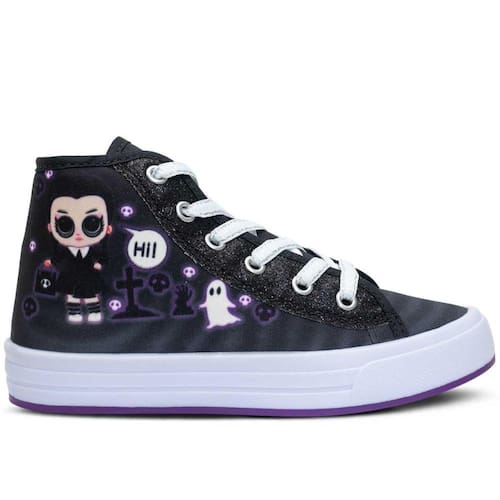 Confeccionado em tecido, com forração super confortável e palmilha em EVA de excelente qualidade. Modelo cano alto, possui solado personalizado e antiderrapante.