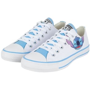 O clássico Chuck Taylor All Star na versão kids recebeu um toque de mágica na coleção Converse x Disney. Para celebrar uma das animações mais amadas nos últimos 22 anos, Lilo & Stitch , a Converse apresenta a coleção Stich, trazendo referências à criaturinha mais fofa do mundo cinematográfica para o dia a dia dos pequenos. Confeccionado em tecido tipo lona de algodão, o modelo traz o rosto de Stitch aplicado na lateral externa, costuras duplas, uma tira de tecido no calcanhar que proporciona maior suporte ao tênis, forro interno acolchoado para maior conforto e dois ilhoses laterais para uma transpiração adequada aos pés. O logo Converse All Star é aplicado na tag da língua e na heeltab do calcanhar. O solado vulcanizado garante a aderência adequada ao caminhar.