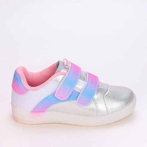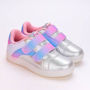 Prepare-se para uma explosão de estilo e diversão o tênis Kidy prateado. Com detalhes holográficos que encantam os olhos das pequenas fashionistas, esse modelo também oferece uma experiência de luzes led que piscam alegremente a cada passo, adicionando um toque de magia a cada movimento. Seu fechamento duplo em fita aderente não só garante um ajuste seguro e personalizado, mas também facilita o calçar, promovendo maior autonomia. Projetado com o conforto em mente, este tênis apresenta uma construção anatômica que oferece suporte e estabilidade aos pés em crescimento, enquanto a sola antiderrapante auxilia para maior aderencia dos passos em qualquer superfície. Combinando diversão e conforto, este tênis é o acessório perfeito para as pequenas estrelas que estão prontas para brilhar.