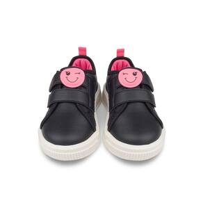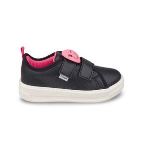 Diversão com Patch Removível: O tênis em sintético preto com perfuros ganha um toque de personalidade e alegria com o patch removível de carinha rosa, permitindo que a sua pequena personalize o calçado e mostre seu estilo único! Conforto Onde Quer que Vá: