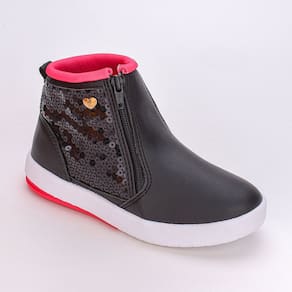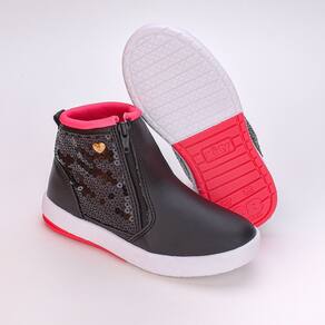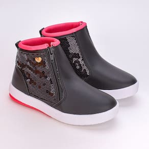 Encante os passos da sua pequena fashionista com esse lindo tênis de cano médio em um elegante tom de preto, realçado por paetês pretos e detalhes vibrantes em rosa pink. Com um fechamento prático em zíper, este tênis não só oferece estilo, mas também conforto, graças ao seu design anatômico. Seu solado antiderrapante proporciona segurança em cada aventura, enquanto sua estética moderna e feminina garante que cada passo seja dado com confiança e estilo