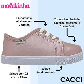 O Tênis Molekinha é a combinação ideal de estilo, conforto e praticidade para acompanhar a rotina das pequenas com segurança e muito charme. Com um visual cheio de brilho e personalidade, ele é perfeito para meninas que gostam de estar sempre bem vestidas sem abrir mão do conforto. Um modelo versátil, que vai bem com diferentes produções e pode ser utilizado desde a escola até os passeios e momentos de lazer.