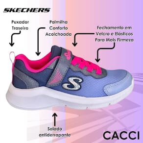 O Tênis Skechers Kids Sole Swifters é a escolha perfeita para acompanhar a energia incansável dos pequenos em todas as suas aventuras. Com um visual moderno e divertido, ele combina conforto, segurança e praticidade no dia a dia da criançada — seja na escola, no parquinho ou em casa. Seu calce é super fácil graças ao puxador traseiro e ao fechamento prático autocolante com elásticos no cabedal, que garantem um ajuste firme, confortável e seguro, ideal para os pezinhos mais agitados. A palmilha macia proporciona o conforto que eles merecem durante todo o dia, enquanto o solado antiderrapante reforça a estabilidade em cada passinho. Tudo isso com o toque especial de qualidade da Skechers, feito para trazer leveza, liberdade e estilo para as pequenas grandes jornadas da infância.
