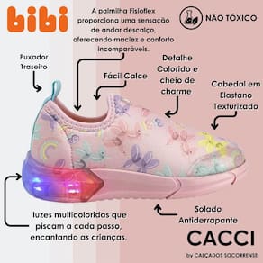 Além disso, o solado conta com luzes multicoloridas que piscam a cada passo, encantando as crianças.