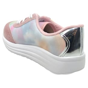Feito em material sintético de alta qualidade, o cabedal é durável e fácil de limpar, perfeito para o dia a dia. Os detalhes metalizados e a aplicação de glitter adicionam um brilho único, tornando o tênis superestiloso e moderno.