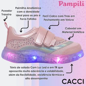 Tênis de led infantil em glitter rosa, com recortes em sintético e aplicação de strass hotfix, moderno e divertido para os pezinhos! Forro interno que auxilia na absorção do suor e espuma no calcanhar para mais conforto. Tênis infantil feminino com palmilha anatômica removível, para maior conforto e cuidado nos primeiros passinhos! Tênis infantil fácil de calçar com abertura através de tia autocolante na parte frontal, dando autonomia para as meninas e facilitando o dia a dia das mamães! Solado translúcido emborrachado com detalhe de borboletas, leve e antiderrapante, para a segurança nas brincadeiras. Led blindado no solado com cores fortes e brilho intenso!