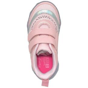 Tênis de led infantil em glitter rosa, com recortes em sintético e aplicação de strass hotfix, moderno e divertido para os pezinhos! Forro interno que auxilia na absorção do suor e espuma no calcanhar para mais conforto. Tênis infantil feminino com palmilha anatômica removível, para maior conforto e cuidado nos primeiros passinhos! Tênis infantil fácil de calçar com abertura através de tia autocolante na parte frontal, dando autonomia para as meninas e facilitando o dia a dia das mamães! Solado translúcido emborrachado com detalhe de borboletas, leve e antiderrapante, para a segurança nas brincadeiras. Led blindado no solado com cores fortes e brilho intenso!