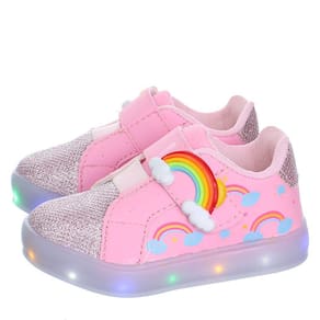 Tenis Infantil Menina Luzinha Led Luz Arco Iris Com Pulseira Rosa - 32 - Rosa