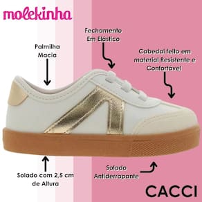 O Tênis Molekinha foi criado para oferecer praticidade e conforto em todos os momentos, acompanhando as crianças em passeios, brincadeiras e no dia a dia. Sua palmilha macia proporciona uma sensação aconchegante, garantindo bem-estar e liberdade de movimento, permitindo que cada passo seja leve e agradável. Esse cuidado especial faz dele um calçado perfeito para quem busca unir estilo e conforto em uma única peça.