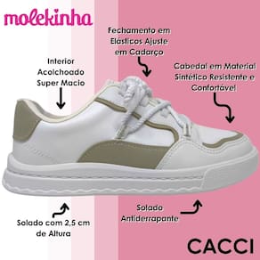 O Tênis Molekinha é a escolha ideal para quem busca conforto, estilo e praticidade no dia a dia das pequenas. Com um visual moderno e cheio de charme, ele oferece o suporte perfeito para acompanhar as crianças em todas as aventuras, com muito mais segurança e bem-estar.