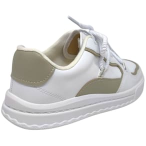 O cabedal é confeccionado em material sintético resistente e confortável, pensado para oferecer durabilidade sem abrir mão da leveza. Já o solado antiderrapante, com dois centímetros e meio de altura, proporciona estabilidade e segurança ao caminhar, além de um toque atual ao visual.