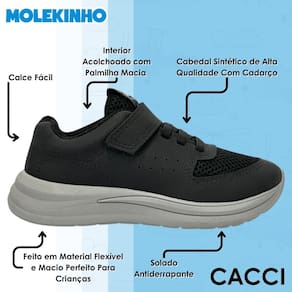 O Tênis Molekinho é perfeito para meninos que buscam conforto e estilo em cada passo. Seu visual moderno se adapta facilmente a diferentes ocasiões, acompanhando os pequenos com charme e praticidade do começo ao fim do dia. Com design versátil, ele combina tanto com looks casuais quanto com produções mais arrumadas.