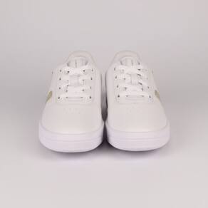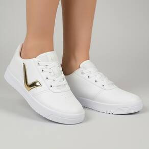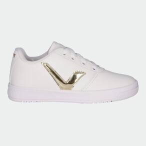 Tênis Infantil Napa Menina Via Vip Cadarços VV3810: conforto e estilo para os pequenos! Confeccionado em material sintético napa de alta qualidade, este tênis oferece durabilidade e fácil manutenção, perfeito para o dia a dia agitado das crianças. O design clean em branco com detalhe dourado metalizado destaca a personalidade delicada e moderna das meninas, ideal para combinar com diversas roupas.