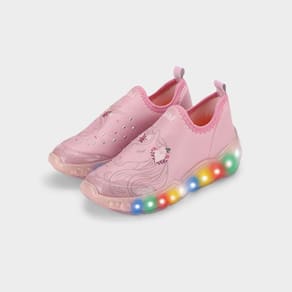 O Tênis Infantil com Luz de LED é confeccionado com materiais de alta qualidade e palmilha Fisioflex, este tênis garante conforto e durabilidade. Na cor rosa e com estampa de unicórnio, possui aplicação de brilhos e é confeccionado em elastano, fácil de calçar e se ajusta perfeitamente ao pé. A palmilha Fisioflex promove a sensação de andar descalço e proporciona ainda mais conforto, estimulando a percepção sensorial e as terminações nervosas, o que contribui para o desenvolvimento natural e saudável das crianças. O tênis possui luzes de LED que piscam a cada passo e tornam as brincadeiras mais divertidas. Com capacidade de duzentos mil ciclos, não há necessidade de carregamento.