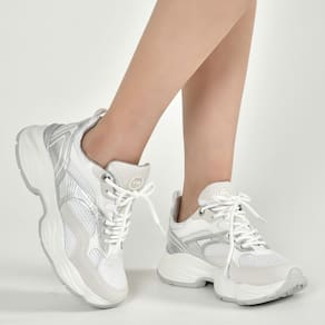 Sintético, parte superior em nobuck/tela colmeia/napa/metalizado. Forro tecido poliéster. Solado sint.pvc expandido.