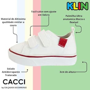 Invista na qualidade, no conforto e no estilo que o Tênis Infantil Klin Menina oferece, proporcionando aos pequenos um calçado que atenda às necessidades específicas das fases mais importantes do seu crescimento.