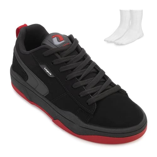 Nome: Tênis Logus Sneaker e Meia LG24-22500P. Gênero: Masculino. Indicado Para: Dia a Dia Ocasião: Estilo/Casual. Material Externo: Nobuck. Material Interno: Têxtil acolchoado. Detalhe: Recortes e costuras por todo cabedal, etiquetas da marca nas laterais. Fechamento: Cadarço. Palmilha: EVA forrada. Entressola: EVA. Solado: Borracha antiderrapante. Tipo de Pisada: Neutra. Peso do Produto: 1.044 kg (o peso varia de acordo com a numeração). Garantia do Fabricante: Contra defeito de fabricação. Origem: Nacional. Código Produto: 01024698. Marca: Logus. Acompanha um par de meias tamanho 37 ao 43. Composição: 83 % Algodão. 12 % Poliamida. 05 % Elastodieno.