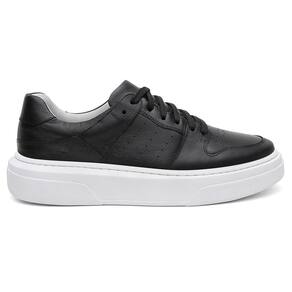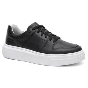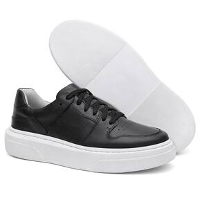 Tênis Masculino Casual Couro Fechamento Cadarço Moderno - 41 - Preto