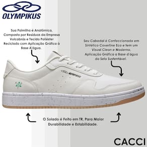 Reforçando o compromisso da Olympikus com a sustentabilidade, o modelo Urbano também integra a categoria casual com um modelo clássico, moderno e sustentável. O seu solado é feito em material TR, para maior durabilidade e estabilidade. Seu cabedal é confeccionado em sintético Coverline Eco e tem um visual clean e moderno, aplicação gráfica a base d’água do Selo Sustentável. Possui ainda forro em tecido poliéster reciclado com espuma sustentável, lingueta em sintético Coverline com etiqueta de fio pet reciclado e atacador no mesmo material. Sua palmilha é anatômica, composta por resíduos da empresa Vulcabrás e tecido poliéster reciclado com aplicação gráfica à base d’água. Conta ainda com QR Code que colabora com a sustentabilidade, diminuindo a quantidade de material informativo sobre o tênis.