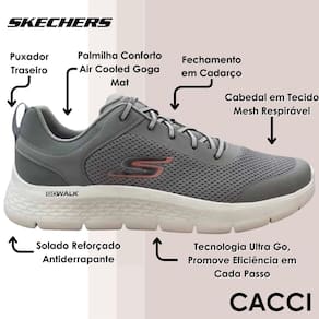 Já o solado de tração em borracha flexível, traz uma naturalidade de movimentos em cada passada. Não perca a oportunidade e aproveite para conhecer de perto o padrão Skechers.