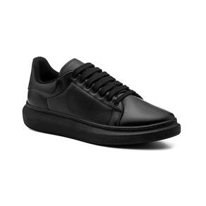 Tênis Masculino Couro Cadarço Confortável Moderno Casual - 42 - Preto