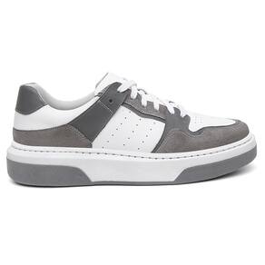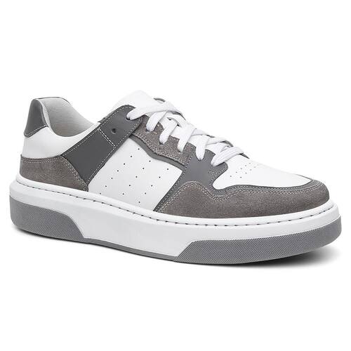 Tênis Masculino Couro Casual Fechamento Cadarço Moderno - 37 - Cinza