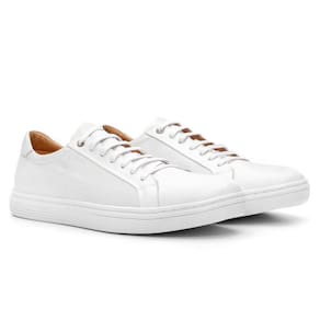 LINHA SAPATÊNIS MASCULINO Sapatênis Masculino confeccionado em Couro (Floater), linha casual indicado para o seu dia-a-dia e também para finais de semanas em seus momentos de lazer. Descrição Técnica: Cor: Branco Cabedal (Parte Externa): Couro (Floater) Fechamento: Cadarços Palmilha Anatômica: E.V.A. importado forrado em Couro Solado: Borracha Colado e Costurado (Antiderrapante)