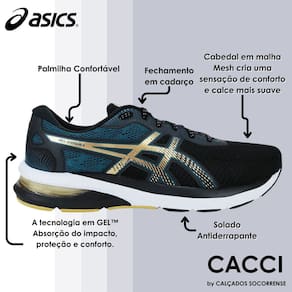 Na entressola, combinamos E.V.A com a tecnologia ícone da ASICS o GEL em sua nova geometria aprimora a absorção de impacto e melhora o equilibrio do calçado.