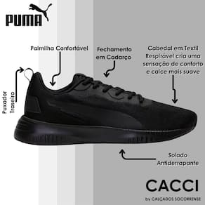 O tênis Flyer Flex expande a bem-sucedido tênis Flyer Runner e traz um estilo totalmente novo ao espaço de flexibilidade da PUMA. O ferramental apresenta uma nova silhueta ousada, com ranhuras flexíveis em toda a extensão do produto. A cobertura de borracha no calcanhar e na biqueira proporciona durabilidade e tração da sola. A parte superior apresenta a marca Formstrip com contorno impresso, além de sobreposições de calcanhar e ilhós. Uma ousada marca PUMA no calcanhar completa o interessante design.