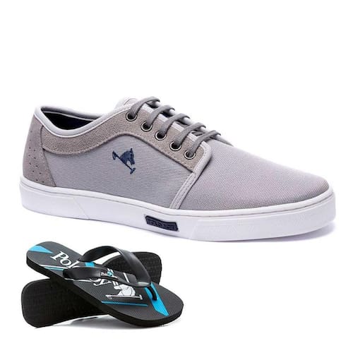 Tênis Masculino Polo Joy Casual Confortável Em Lona + Chinelo - 41 - Cinza