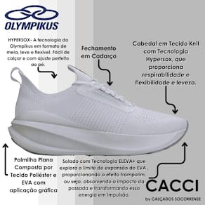 A tecnologia de borracha antiderrapante Gripper traz durabilidade e alta resistência. Além disso, oferece tração superior, tornando-o uma escolha confiável para todas as situações.Tecnologias: Hypersox - A tecnologia da Olympikus em formato de meia, leve e flexível. Fácil de calçar e com ajuste perfeito ao pé. Eleva + -Tecnologia exclusiva Olympikus, que explora o limite de expansão do EVA para alcançar máxima resposta. Este EVA é leve e de baixa densidade, garantindo menor deformação e mantendo o conforto e a durabilidade.Gripper -Borracha antiderrapante que garante melhor aderência.