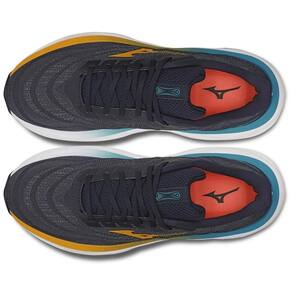 O Wave Sky 9 foi desenvolvido com a maior altura de entressola da história da Mizuno, oferecendo uma experiência de amortecimento excepcional com um design de entressola macio e confortável. O cabedal apresenta um design contornado de forma orgânica que flui da frente para trás, evocando a sensação de cortar o vento, ao mesmo tempo em que mantém uma aparência minimalista. O solado incorpora um design circular que lembra ventosas, garantindo uma aderência segura ao solo e proporcionando uma experiência de corrida confortável.