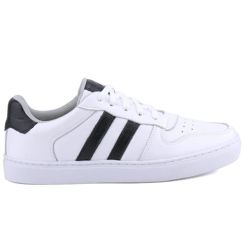 Tênis Masculino Couro 2201 Branco Detalhes Preto - Mr. Gutt