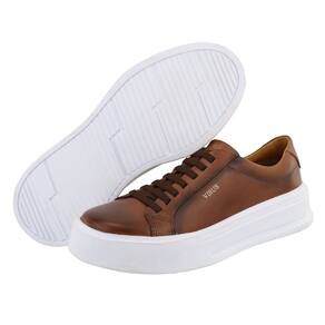 Tenis Masculino Sapatenis Sneaker Casual Em Couro Calce Fácil Palmilha Espumada Excelente Qualidade - 42 - Marrom