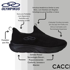 Escolha perfeita para quem busca mais estilo no seu dia a dia, o Olympikus Clic oferece diversos benefícios em termos de desempenho e estabilidade. Seu solado possui tecnologia Eleva+, proporcionando conforto, leveza e maciez. Conta também com pintura na parte superior da sola para harmonia visual do produto com o cabedal, confeccionado em tecido knit feito em única camada com tecnologia Hypersox. Possui estrutura anatômica similar a de uma meia, com aplicação de elastano em regiões estratégicas para facilitar o calce. A parte traseira é produzida em tecido elástico moldado. O forro é composto por tecido poliéster com espuma e sua palmilha é anatômica em tecido poliéster e EVA, com aplicação gráfica.